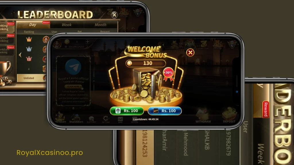 The Royal X Casino is a newly introduced online casino application in Pakistan by developers. Players can participate in online events and betting games by getting this new version for zero cost. It has a collection of Slots, Poker, and Traditional games like Ludo and Andar Bahar. Always invest in these games if you have a passive income from any other source. Never invest from your savings; one loss in the game affects your pocket money and savings.